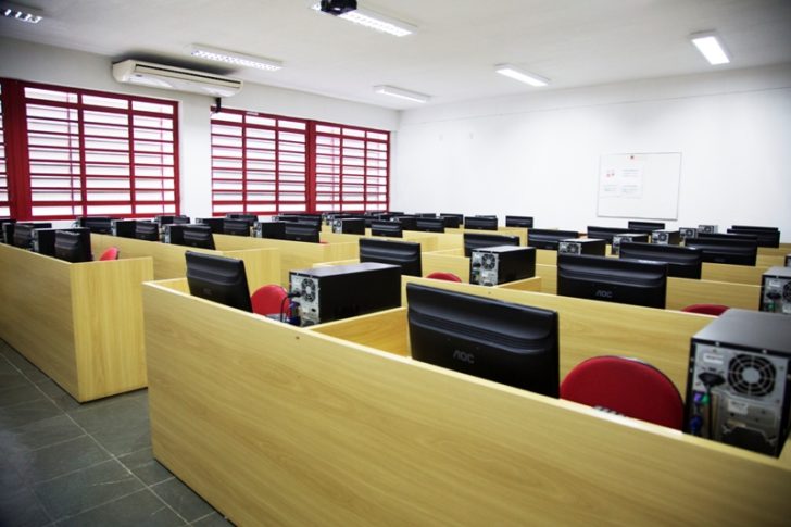 Cada um deles, possui 30 máquinas com softwares específicos para os acadêmicos utilizarem durante aulas práticas dos cursos da área ou para usarem de forma livre para pesquisas.